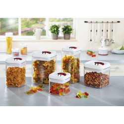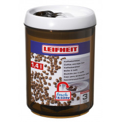 Open and close tightly with just one hand: the practical fresh & easy keep-fresh containers from Leifheit. They are distinguished by their elegant design and the ring of the patented one-handed operation. To open just lift up the ring. To close place the lid on top, turn the ring downwards and everything is instantly airtight and watertight. The precious aroma of the coffee stays intact. Capacity: 1.4 litres. Leifheit grants a
