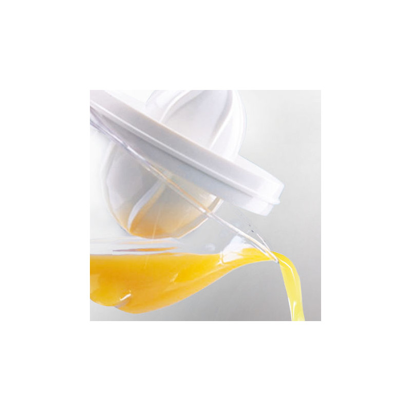 A press for all citrus fruits: the Leifheit ComfortLine citrus press made of high quality plastic offers a double cone to press small and large citrus fruits easily. The small cone is suitable for lemons, limes and mandarins. For the pressing of oranges or grapefruits simply turn the upper part to use the large cone. A large container with measuring scale contains the juice of several fruits. A practical spout enables non-drip pouring into a glass.