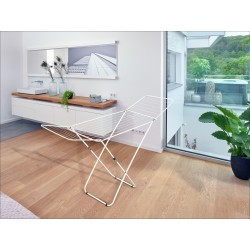 Leifheit laundry dryer Classic 100 Easy offers everything for a compact, sturdy and inexpensive drying place. With only 52 cm it is narrow enough for the smallest balcony, corridor or even in the bathtub. The drying bars have a length of 10 m and enough space for a whole load of laundry. The frame has a childproof lock and can be folded easily and quickly.