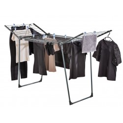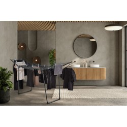 Construcția solidă, cu picioare paralele, oferă stabilitate excelentă, iar lungimea totală de uscare de 20 de metri îți permite să întinzi până la două mașini de rufe în același timp.