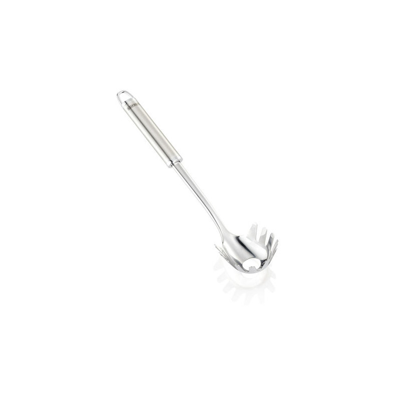A slim elegant design combined with high quality stainless steel: the kitchen helpers of the Leifheit Sterling series remember with their matt and shining elements of persistence and brilliance of classic silver. They are perfectly suitable for the serving on the table and convince with their operation: the oval-shaped handle of the Sterling spaghetti spoon is easy and safe to use. The high quality stainless steel offers a pleasant stability. With practical eyelet for hanging for the separately available Sterling hook rail.