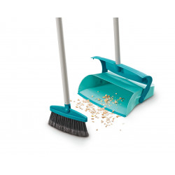 The sweeping set with lots of extras for greater cleanliness and comfort. The versatile broom's long handle is equipped with a continuously adjustable joint and reaches every corner. The advantage: the joint means the broom doesn't need to be tilted so the bristles always make full contact with the floor and sweep with you. The finely split bristle ends also ensure greater cleanliness. They increase the sweeping surface and even pick up the finest dust and hairs. To ensure that everything remains squeaky clean when disposing of dirt, the dirt chamber on the XL shovel closes automatically as soon as it leaves the floor. The broom and shovel are both equipped with a long handle for comfortable operation. All the sweeping can be done while standing up - without ever having to bend down. To save space during storage, the shovel handle comes with an integrated broom mount and an eyelet for hanging.Split bristle ends for best sweeping results.