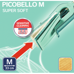 Leifheit wiper pad super soft in combination with floor wiper Picobello M is the perfect cleaning solution for sensitive floors like parquet, laminate and cork. The fibres absorb only a small amount of water. Moisture-sensitive and valuable wooden floors remain durable good and well looked after even after years. The wiper pad is washable at 40°C and does not loose its cleaning power even after repeated washings. Wiping width is 33 cm.