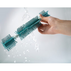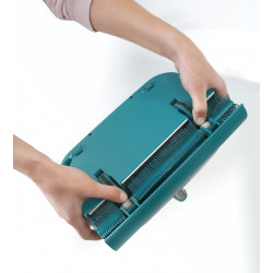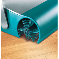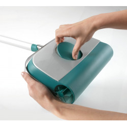 Carpet sweeper Regulus supra brings cleanliness into the house in a matter of seconds. With its mechanical drive the manoeuvrable sweeper is immediately ready for use – completely without electricity and without battery – no annoying cable to roll up or to unwind, no weight that has to be pulled or carried through the flat, no noise and no electricity consumption. Carpet sweeper Regulus is ready for use before the vacuum cleaner is employed. The power is also right: the special supra brush collects dust, dirt, crumbs and hairs from every floor, whether smooth floors like tiles and laminate or from carpets. The brush sweeps exactly up to the skirting board, without leaving a dirty edge. After the sweeping it can easily be taken and cleaned using running water. The dirt is collected in a dust container instead of a bag. When it is filled, it can be emptied fast and hygienic. The hands are not brought into contact with the dirt. Particularly practical is the enormous flexibility of the sweeper. The joint reacts to every movement and revolves easily table- and chair-legs. The handle can be bent for the sweeping under armoires and beds. Carpet sweeper Regulus supra consists of a sturdy metal casing and has a sweeping width of 26 cm.