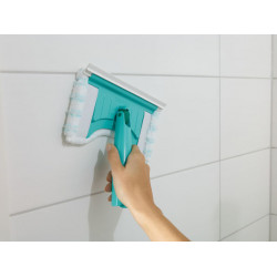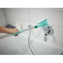 Tile and bathtub wiper Flexi Pad makes the cleaning of bathroom and shower so easy like it has never been before. Thanks to its enormous flexibility and the high range the Flexi Pad wipes in every corner – without bending over the bathtub or the shower with painful back. With the round gap the wiping surface of Flexi Pad is exactly suitable for the shapes of fixtures and removes unpleasant dirt edges with only less wiping. The 360° rotating joint makes it extremely manoeuvrable. It manages easily bathtub curves and fixtures and wipes thoroughly every corner. For hard to reach areas the telescopic handle is to use. It is extendable from 75 up to 120 cm. After the damp cleaning the Flexi Pad can be turned around. The tiles are polished till they shine with the extraction rim. The cover of the tile and bathtub wiper Flexi Pad is made of the proven Leifheit micro fibre Duo. A number of fine bristles, which stick out a little bit reach even lowered gaps and remove even persistent dirt like scale and the remains of soap without effort. The wiping width is 20 cm.