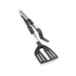 Two functions in one device: this saves space in the cupboard and a lot time. The Leifheit tongs turner 2 in 1 is exactly the thing one needs for frying. For the turning of the steak, for example, it is a sturdy spatula. For the save serving it turns in a matter of seconds into a tongs. A new lock mechanism makes it possible: simply release the lock and the spatula turns into a tongs. The end of the tongs is made of elastic, up to 160°C heat-resistant nylon, which does not leave scratches in Teflon coated pans. The handle of stainless steel is pleasant and sturdy in the hand.