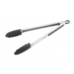 The Leifheit grill and kitchen tongs is ideal for the precise gripping and turning over. Whether as slotted turner, or to grab bread rolls and biscuits, pasta – the sturdy tongs made of stainless steel grabs steaks as well as spaghettis because of its ribbed surface. The tongs can be used in Teflon pans without scratching the non-stick surface thanks to the silicone coating. The tongs has a lock for closing for the space-saving storing and an eyelet for the ready to hand hanging. Length: 31 cm.