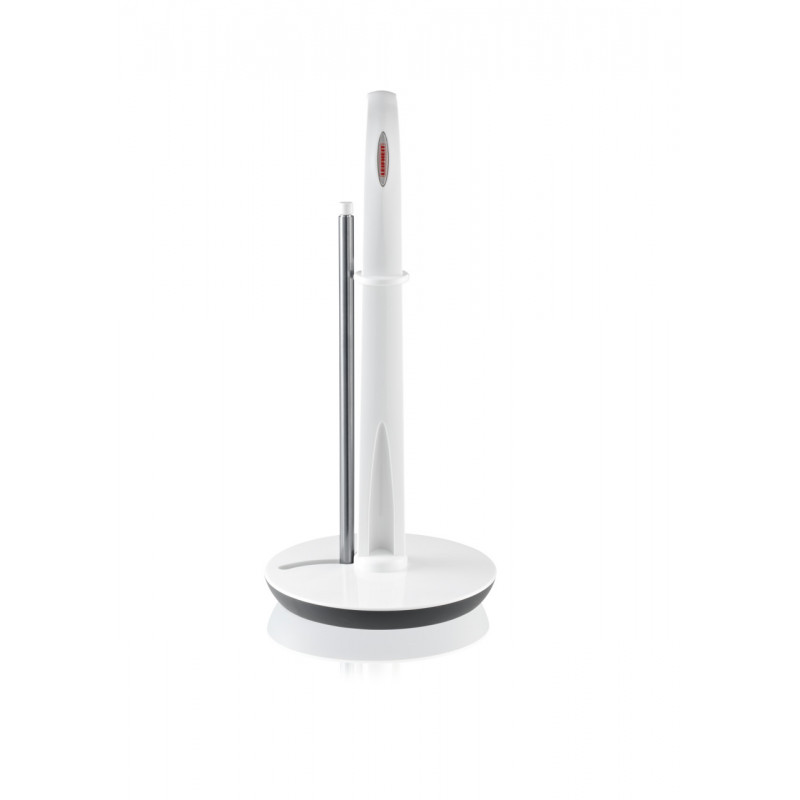 Kitchen roll is often needed when the hands are clammy or only one hand can be used. Nice to have a kitchen roll ready to hand immediately. This enables the Leifheit upright roll holder. A special spring tensioning ensures the end of the roll always ready to hand, and that sheet for sheet can be torn using only one hand – without holding the roll holder with the other hand. It is sturdy enough to stand non-slipping. The upright roll holder is suitable for all commercial roll sizes.