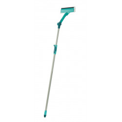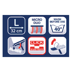All good things come in threes – this proves impressively the hand window cleaner 3 in 1 from Leifheit. It is the unique all-round talent of its kind and causes a clear saving of labour. With only one device three working steps can be done at the same time: window cleaning, cleaning of corners and frames, squeegee. This enables the unique all-round micro fibre cover, which cleans the side window frames at the same time. This saves time and trouble. After the cleaning the integrated squeegee lip causes streak-free gleam. For flexibility and maximum operation comfort the hand window cleaner has a rotating joint. It is excellent suitable for the efficient cleaning and squeegee in wavy lines – the technique of the professionals. Wiping width is 33 cm. The handle enables the use of the Leifheit Click-System handle with telescopic function.