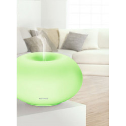 The Design Aroma Diffuser Milano Plus is comfortable and extremely stylish and opens up a new dimension of relaxed fragrance experiences for your home. The casing alone impresses with its elegant shape. Use the infrared remote control to individually – even independently from each other – control fragrance and the LED interplay of light. Choose only fragrance, only light, or a combination of both – all to fit your mood. Choose your desired colour at the push of a button or select the LED colour change function. It is not surprising that Milano Plus has thus been awarded the Plus X award for design and functionality. The sanitised glass creates a magnificently pleasant, harmonious light. Modern ultrasonic nebulization technology guarantees the optimum dispersion of fragrance in the room – up to 6 hours thanks to the large water container. Specifically suited for use with Soehnle fragrance oils.