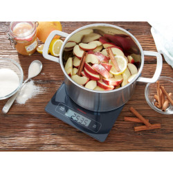 An all-purpose whiz like Page Profi ought to be highly praised. It handles lightweights and heavyweights. The flat kitchen scale with the large weighing platform can handle up to 15 kg and still is precise to one gram. The innovative HOLD function freezes the display for 10 seconds. So you can weigh even large objects that hide the display. The smooth glass surface with anthracite gray enamel is elegant and very easy to clean. With the patented Sensor Touch technology pleasant to operate: a slight touch is all that's needed - Page Profi will show its skills. The new all-round talent is, of course, equipped with add-weight function and auto-off function. With it, weighing becomes effortless.