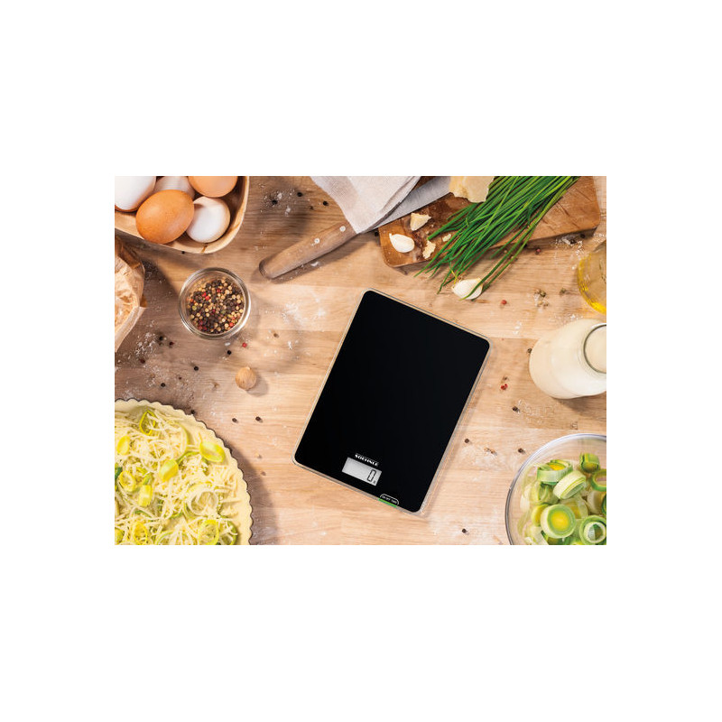 With its appealing, timeless, modern design and user-friendliness, the Soehnle Page Compact 100 kitchen scale is perfect for getting you set up in your first kitchen. Equipped with a weighing capacity of 5 kg and precise 1 g incremental measurements, it offers high levels of performance despite its compact size! The easy-to-read LCD screen and practical Tare function provide you with everything you need for everyday use. Thanks to its slim, compact design, the Page Compact 100 can be stored away to save space. The scales switch off automatically. This saves a great deal of energy and prolongs the battery life to around two years when used on average twice a day. Childproof, the batteries are stowed away safely in a compartment that is firmly secured with screws