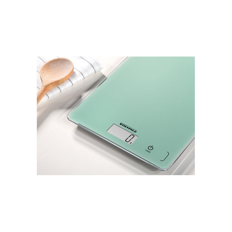 The Page Compact 300 Mint To Be kitchen scale from Soehnle is neat in design, easy to operate and offers that extra bit of convenience in the kitchen. And it’s also now available in a striking, on-trend pastel colourway. Weights of up to 5 kg are shown in precise 1 g increments on the easy-to-read LCD display. The Tare function returns the display to zero, so that multiple ingredients can be weighed in the same bowl. The patented Sensor Touch guarantees comfortable operating - as a light touch of the buttons is all that is needed, and ensures that the weighing surface is easy to clean. Thanks to its energy-saving automated switch-off, the scale turns itself off automatically after use. The Page Compact 300 Mint To Be can be stored in your kitchen cupboard or hung up on the wall, saving a great deal of space. When used twice daily, the batteries provided guarantee more than two years of undisturbed weighing enjoyment. The battery compartment is secured firmly with screws making it especially childproof.