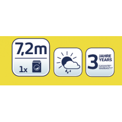 Whether inside or outside – the wall-mounted dryer Telegant 100 allround is the modern and compact solution for saving space and the little washing on the side. Closed, it offers an elegant design, opened it presents with eight drying bars about 7,20 metres drying length. Because of the completely closed design the drying bars are protected against dirt and rain even on the outside. To open it, simply unfold the two wings and the sturdy, powder-coated drying bars are ready for use. Dowels and screws inclusive.