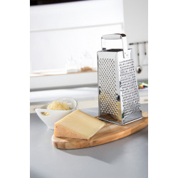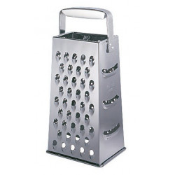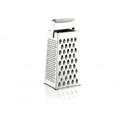 Whether coarse or fine grated, or cut into regular slices: four grating surfaces chop easily cucumbers, potatoes, cheese and every kind of vegetable. The ideal all-round grater for the varied prepared platter of raw vegetables. A handle with plastic insert ensures a comfortable holding. Cleaning in the dishwasher.