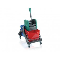 Caruciorul are loc pentru 2 galeti: una albastra pentru apa curata si una rosie pentru apa murdara. Ambele galeti au o capacitate de 17 l fiecare.