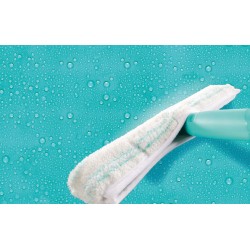 RESIGILAT Rezerva Micro-Duo ;ușor de curățat ;poate fi schimbata rapid și ușor cu ajutorul dispozitivului de fixare Velcro. Pur și simplu introduceți ștergătorul, închideți Velcro și stergatorul Wind W M este gata pentru o curățare completă și rapidă a geamurilor. Capacul unic, integral, Micro Duo, curăță geamurile, ramele și colțurile într-o singură etapă și, cu o lățime de 26 cm, rezerva oferă o dublă putere de curățare: perii speciali aduna cu ușurință murdăria grosieră, iar microfibra fină se imbina în mod fiabil împreună cu apa;se poate spăla la 40 ° C.