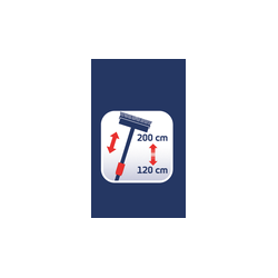 În funcție de înălțimea sau dimensiunea suprafeței, curățătorul de ferestre poate fi utilizat ca dispozitiv manual sau poate fi extins de la 120 până la 200 cm datorită mânerului telescopic.