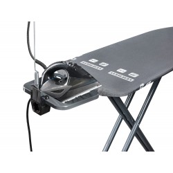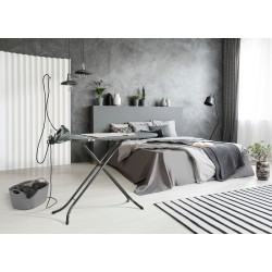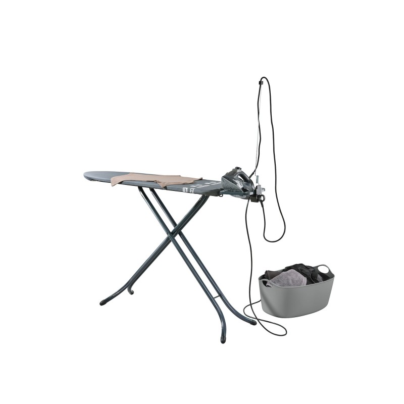 Aceasta combina un design atractiv in negru si antracit cu o functionalitate remarcabila. Suprafata de calcat ultrausoara de 120x38 cm din plastic special faciliteaza asamblarea, dezasamblarea si depozitarea mesei de calcat. Husa Thermo-Reflect asigura o reflexie inovatoare a aburului și a caldurii, care creează un efect de calcare pe două fețe. Acest lucru economiseste timp pretios si, in acelasi timp, obtine rezultate optime. Pentru un confort maxim, masa de calcat Leifheit este reglabila pe inăltime pentru a permite calcatul la inaltimea optima de lucru, fara dureri de spate. Suportul fix pentru fierul de calcat cu suport pentru cablu si priza asigura ca fierul de calcat este plasat in siguranta. Cadrul de bază stabil ofera un suport sigur, în timp ce blocajul de transport face ca masa de călcat Air Board M Black Plus sa fie usor de mutat si asigura transportul in siguranta. Modelul este potrivit atat pentru fiarele de calcat conventionale, cat si pentru cele cu aburi. Husa pentru masa de calcat certificata Oeko-Tex completeaza acest produs de inalta calitate si asigura o experienta de calcat fara griji.